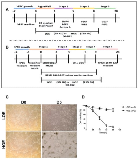 - Cameron, C.M.; Harding, F.; Hu, W.-S.; Kaufman, D.S. Activation of hypoxic response in human embryonic stem cell–derived embryoid bodies. Exp. Biol. Med. 2008, 233, 1044–1057. [Google Scholar] [CrossRef] [PubMed]