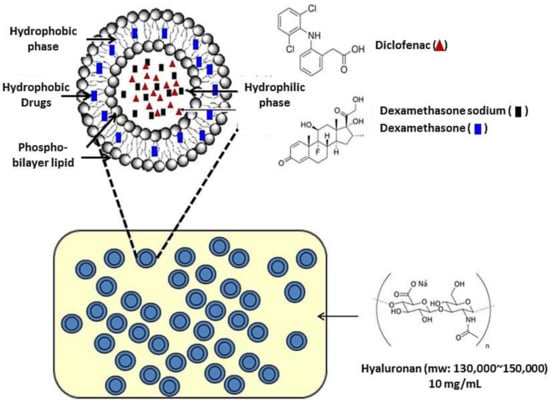 Hyaluronic acid (molecular weight from 130,000–150,000), hydrophilic and hydrophobic dexamethasone, diclofenac, Di-palmitoylphosphatidylcholine (DOPC), cholesterol, DIC and DEX were all purchased from Sigma-Aldrich (St. Louis, MO, USA).