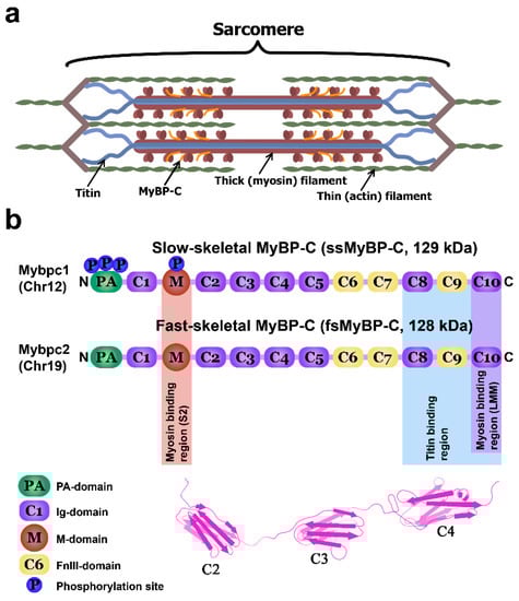 - Ackermann, M.A.; Kontrogianni-Konstantopoulos, A. Myosin binding protein-C slow: An intricate subfamily of proteins. J. Biomed. Biotechnol. 2010, 2010, 652065. [Google Scholar] [CrossRef] [PubMed]