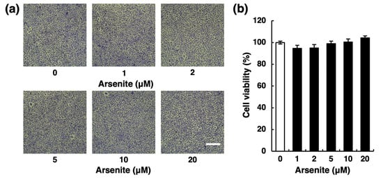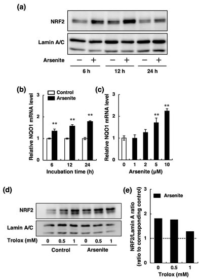 - Aono, J.; Yanagawa, T.; Itoh, K.; Li, B.; Yoshida, H.; Kumagai, Y.; Yamamoto, M.; Ishii, T. Activation of Nrf2 and accumulation of ubiquitinated A170 by arsenic in osteoblasts. Biochem. Biophys. Res. Commun. 2003, 305, 271–277. [Google Scholar] [CrossRef]