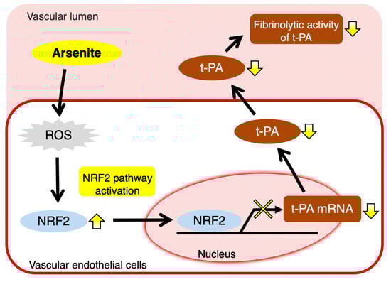 Nakano T, Takahashi T, Yamamoto C, Yoshida E, Kaji T, Fujiwara Y. Arsenite Inhibits Tissue-Type Plasminogen Activator Synthesis through NRF2 Activation in Cultured Human Vascular Endothelial EA.hy926 Cells. International Journal of Molecular Sciences. 2021; 22(2):739. https://doi.org/10.3390/ijms22020739