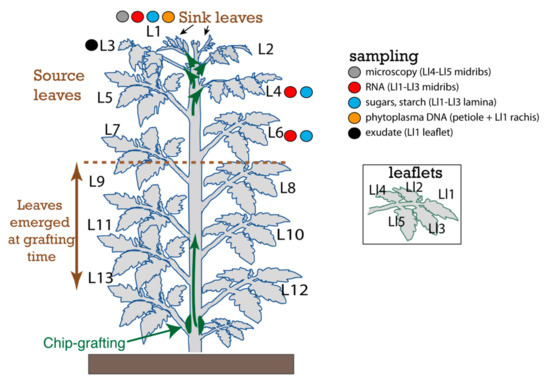 - Lepka, P.; Stitt, M.; Moll, E.; Seemüller, E. Effect of phytoplasmal infection on concentration and translocation of carbohydrates and amino acids in periwinkle and tobacco. Physiol. Mol. Plant Pathol. 1999, 55, 59–68. [Google Scholar] [CrossRef]