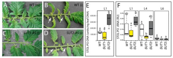 Marco, F.D.; Batailler, B.; Thorpe, M.R.; Razan, F.; Le Hir, R.; Vilaine, F.; Bouchereau, A.; Martin-Magniette, M.-L.; Eveillard, S.; Dinant, S. Involvement of SUT1 and SUT2 Sugar Transporters in the Impairment of Sugar Transport and Changes in Phloem Exudate Contents in Phytoplasma-Infected Plants. Int. J. Mol. Sci. 2021, 22, 745. https://doi.org/10.3390/ijms22020745