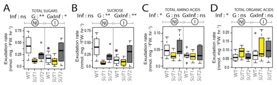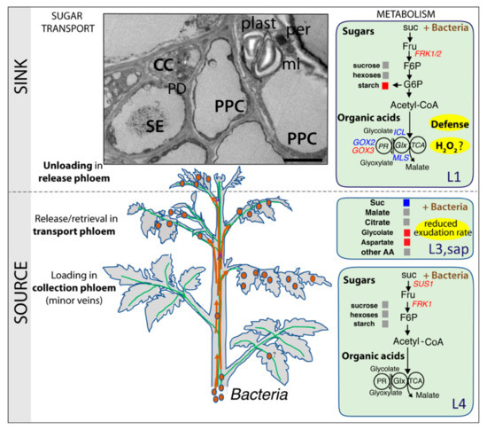 2.4. Infection Impairs Phloem Exudation of Sugars and Organic Acids