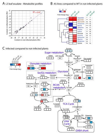 3.5. Homeostasis of the Metabolite Content in Phloem Exudates of Infected Plants