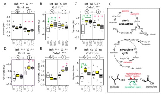 3.3. Glycolate–Glyoxylate Metabolism in Symptomatic Leaves
