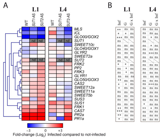 Chicago/Turabian StyleMarco, Federica De, Brigitte Batailler, Michael R. Thorpe, Frédérique Razan, Rozenn Le Hir, Françoise Vilaine, Alain Bouchereau, Marie-Laure Martin-Magniette, Sandrine Eveillard, and Sylvie Dinant. 2021. "Involvement of SUT1 and SUT2 Sugar Transporters in the Impairment of Sugar Transport and Changes in Phloem Exudate Contents in Phytoplasma-Infected Plants" International Journal of Molecular Sciences 22, no. 2: 745. https://doi.org/10.3390/ijms22020745