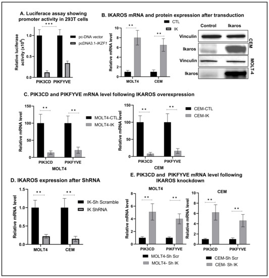 2.4. IKAROS Negatively Regulates Transcription of PIK3CD and PIKFYVE Genes