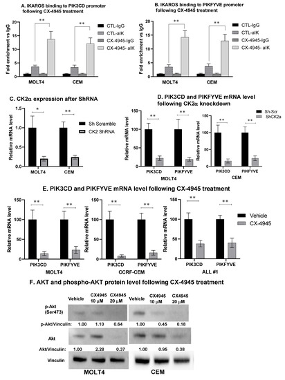 2.7. CX-4945-Induced Repression of PI3K Pathway Genes Is Mediated via IKAROS