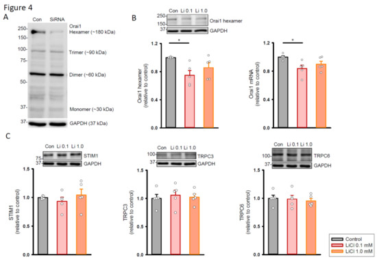 2.3. Therapeutic Trough Levels of Lithium Decrease Orai1 Expression