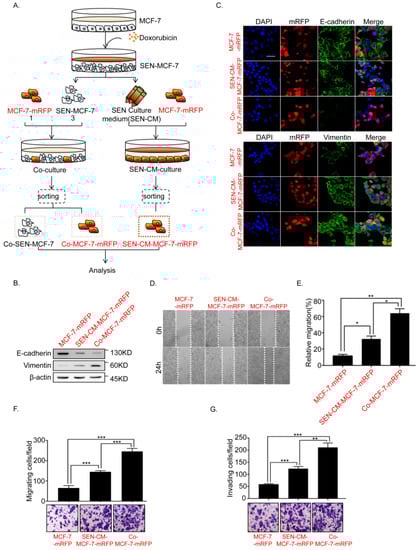 2.1. Senescence of Breast Cancer Cells Induced by Doxorubicin Promotes EMT of Adjacent Breast Cancer Cells