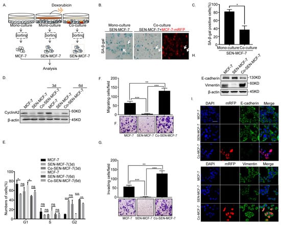 2.2. Senescent Breast Cancer Cells Re-Enter the Cell Cycle and Undergo EMT after Direct Co-Culture with Breast Cancer Cells