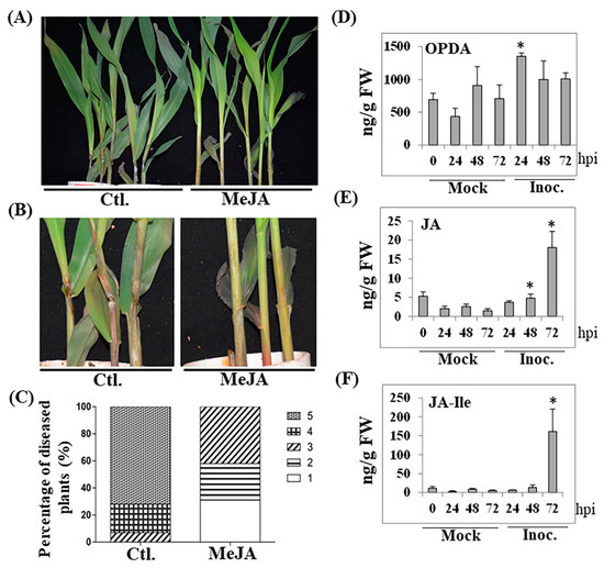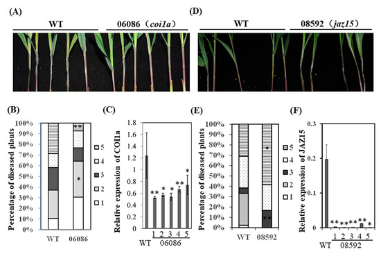 3.1. Maize Susceptibility to F. graminearum Is Promoted by JA and COI1a