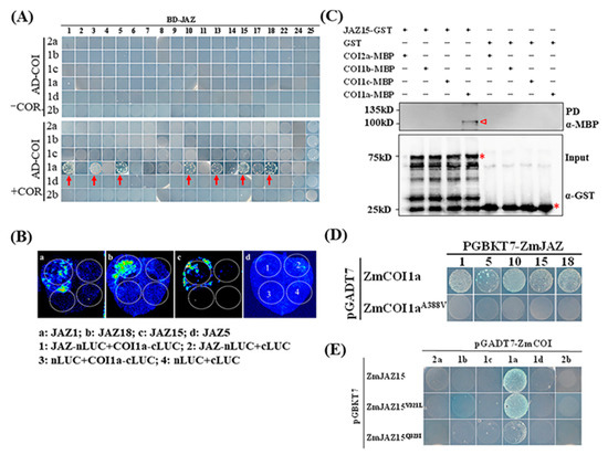 - An, L.; Ahmad, R.M.; Ren, H.; Qin, J.; Yan, Y. Jasmonate signal receptor gene family ZmCOIs restore male fertility and defense response of Arabidopsis mutant coi1-1. J. Plant Growth Regul. 2019, 38, 479–493. [Google Scholar] [CrossRef]