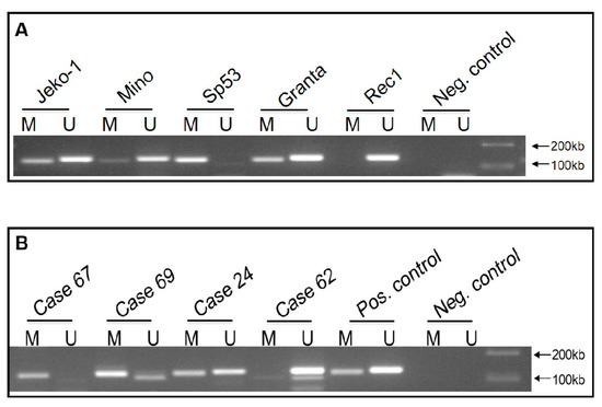 2.2. WIF1 Is Hypermethylated in Most MCL Cell Lines and Tumors