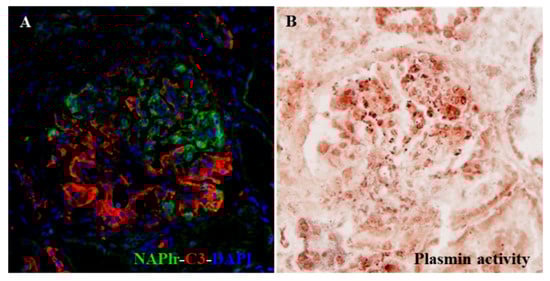 - Uchida, T.; Oda, T. Glomerular deposition of nephritis-associated plasmin receptor (NAPlr) and related plasmin activity: Key diagnostic biomarkers of bacterial infection-related glomerulonephritis. Int. J. Mol. Sci. 2020, 21, 2595. [Google Scholar] [CrossRef] [PubMed]