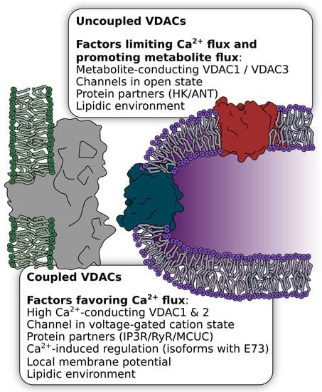 Many of the aforementioned mechanisms might be regulated by partner proteins. VDAC was shown to interact with many cellular proteins ranging from small signaling molecules to large enzymes and other ion channels, and these interactions are often associated with Ca2+ homeostasis or regulated by Ca2+.
