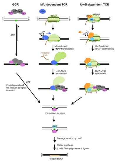 nucleotide excision repair; NER; DNA repair; DNA damage recognition; UvrA; UvrB; UvrD; Mfd 1. Introduction