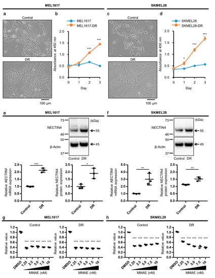 2.3. NECTIN4 Is Upregulated in BRAFi-Resistant Melanoma Cells