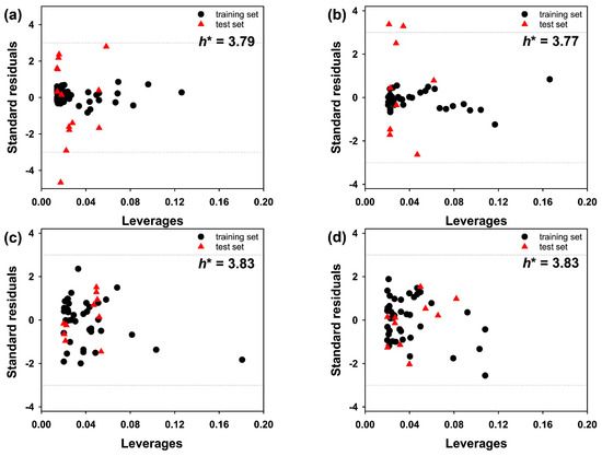Here, p and n are the number of ESP descriptors and the number of molecules in the training set, respectively. Predictions with an h value higher than h* may not be reliable because the results can be regarded as a consequence of extrapolation instead of an exact fit.