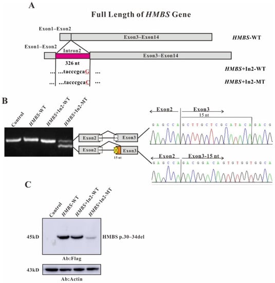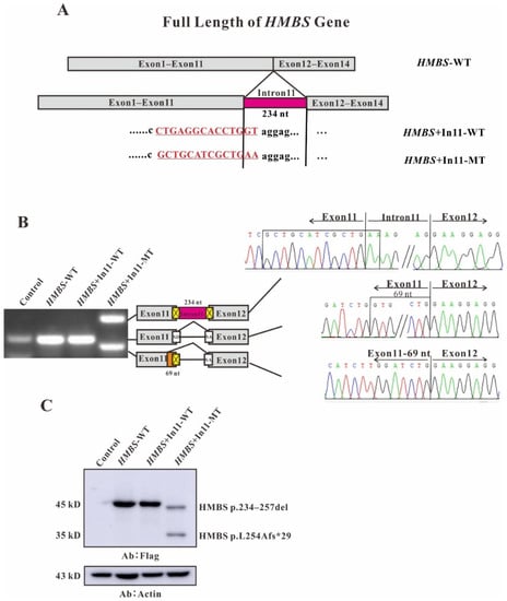 2.2. Corroboration of HMBS Mutations as the Determinant of Alternative Splicing in Splicing Assay