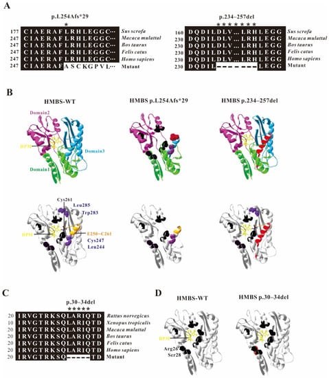2.3. Model Analysis of Abnormal Structure of HMBS Caused by Mutations