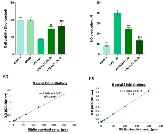 2.1. BZA Promotes Survival of PC12 Neural Cells and Reduces In Vitro Nitric Oxide (NO) Production