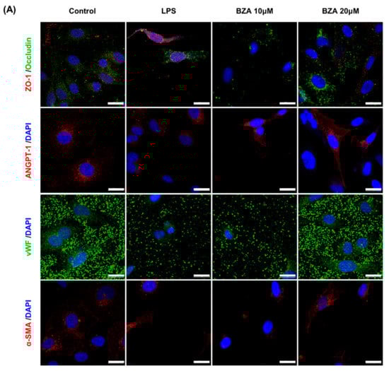 2.3. BZA Enhances Angiogenesis and Reduces In Vitro Blood-Spinal Cord Barrier (BSCB) Disruption