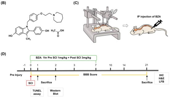 Kim, Y.; Roh, E.J.; Joshi, H.P.; Shin, H.E.; Choi, H.; Kwon, S.Y.; Sohn, S.; Han, I. Bazedoxifene, a Selective Estrogen Receptor Modulator, Promotes Functional Recovery in a Spinal Cord Injury Rat Model. Int. J. Mol. Sci. 2021, 22, 11012. https://doi.org/10.3390/ijms222011012