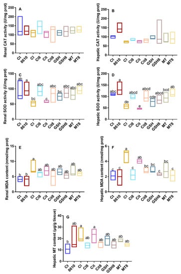 2.1. Changes in Cadmium Content and Antioxidant Indexes in Livers and Kidneys