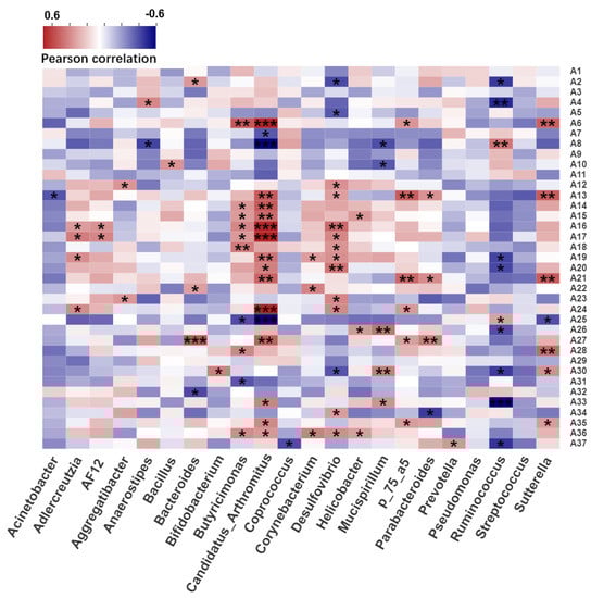 2.4. Correlation Analysis between Intestinal Microbiota and Serum Metabolites