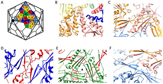 In total, each MCP interacts with eight others: two are from the same capsomer, while the other six are spread across three different adjacent capsomers. The analysis of the various subunit–subunit interactions reveals that there are five main interfaces which can explain all the intra and inter capsomer’s interactions (Figure 3).