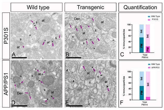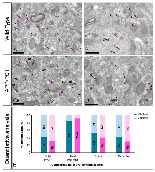 All authors had full access to all data in the study and take responsibility for the integrity of the data and the accuracy of the data analysis. R.L. designed the project; R.A.-R., A.M.-B., C.A., and A.E.M.-M. performed histoblot analysis; R.A.-R., A.M.-B., and A.E.M.-M. performed pre-embedding immunoelectron microscopy; R.A.-R., A.M.-B., and C.A. performed quantitative analyses for pre-embedding immunoelectron microscopy; J.Á. and F.H. provided transgenic mice and feedback on the analysis and manuscript; R.A.-R., A.M.-B., C.A., and R.L. analysed data; R.L. wrote the paper. All authors have read and agreed to the published version of the manuscript.