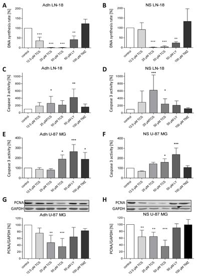 - Moon, S.-H.; Kim, D.-K. PI3K/Akt and Stat3 signaling regulated by PTEN control of the cancer stem cell population, proliferation and senescence in a glioblastoma cell line. Int. J. Oncol. 2013, 42, 921–928. [Google Scholar] [CrossRef] [PubMed]