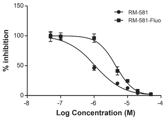 4.3. IC50 Determination of RM-581 vs. RM-581-Fluo in PC-3 Cells