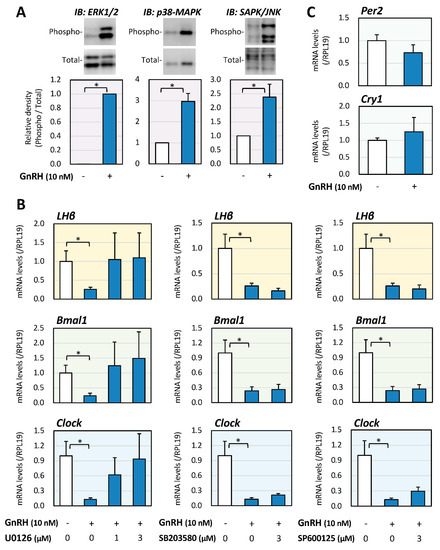 2.3. Involvement of MAPKs in GnRH-Induced LH and Clock Gene Expression