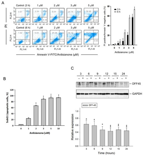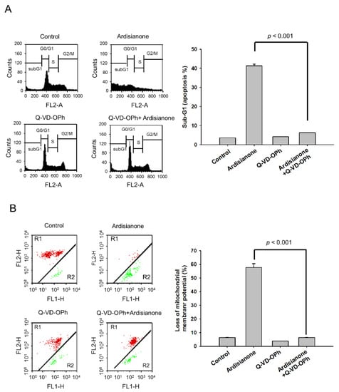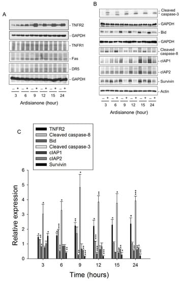 2.2. Ardisianone Induced Both Death Receptor- and Mitochondria-Mediated Programmed Cell Death