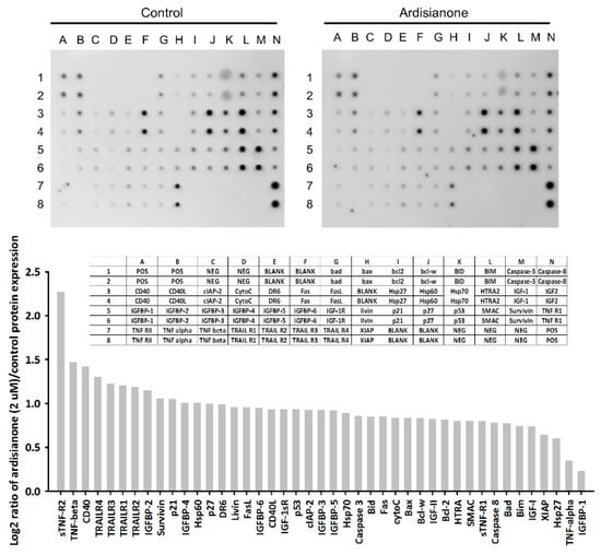 - Yu, C.C.; Wu, P.J.; Hsu, J.L.; Ho, Y.F.; Hsu, L.C.; Chang, Y.J.; Chang, H.S.; Chen, I.S.; Guh, J.H. Ardisianone, a natural benzoquinone, efficiently induces apoptosis in human hormone-refractory prostate cancers through mitochondrial damage stress and survivin downregulation. Prostate 2013, 73, 133–145. [Google Scholar] [CrossRef] [PubMed]