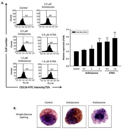 2.4. Ardisianone Induced Differentiation of HL-60 Promyelocytes