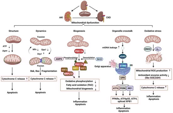 Chicago/Turabian StyleZhang, Xiaoqin, Ewud Agborbesong, and Xiaogang Li. 2021. "The Role of Mitochondria in Acute Kidney Injury and Chronic Kidney Disease and Its Therapeutic Potential" International Journal of Molecular Sciences 22, no. 20: 11253. https://doi.org/10.3390/ijms222011253