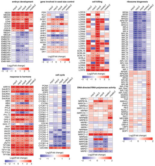 2.6. nrpc2, nrpc3, nrpc8, nrpabc1, and nrpabc2 Mutant Seeds Show Transcriptomic Alterations