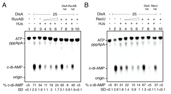 2.12. RuvAB- or RecU-Bound HJ-J3 DNA Blocks DisA-Mediated C-Di-AMP Synthesis