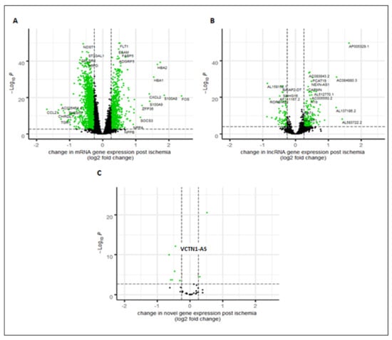 2.1. Protein Coding, Annotated and Novel lncRNAs Associated with Ischemia Identified with Illumina Short-Read Sequencing