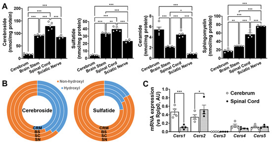 - Giussani, P.; Prinetti, A.; Tringali, C. The role of Sphingolipids in myelination and myelin stability and their involvement in childhood and adult demyelinating disorders. J. Neurochem. 2020, 156, 403–414. [Google Scholar] [CrossRef] [PubMed]