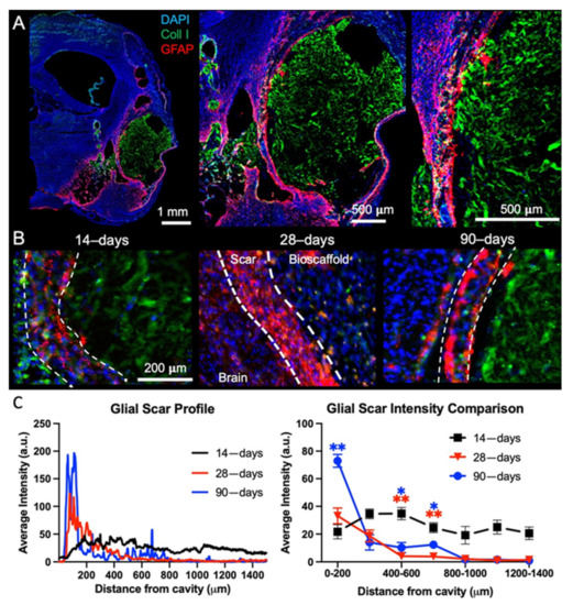 2.2. Post-Stroke Maturation of Glial Scar Affects Biodegradation