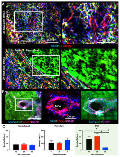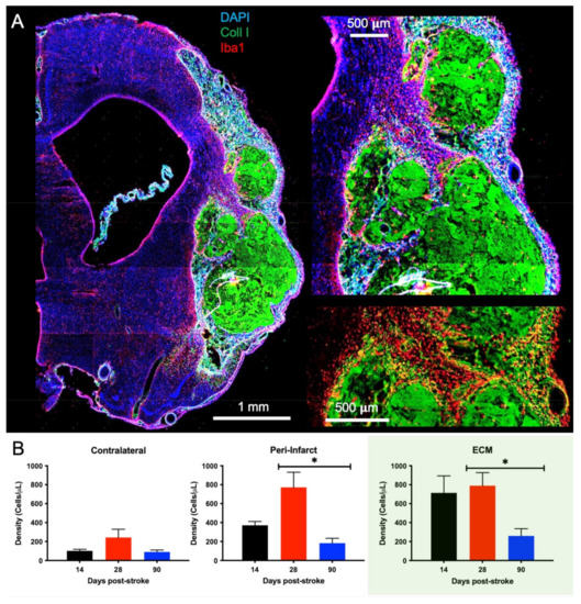 Chicago/Turabian StyleDamian, Corina, Harmanvir Ghuman, Carrinton Mauney, Reem Azar, Janina Reinartz, Stephen F. Badylak, and Michel Modo. 2021. "Post-Stroke Timing of ECM Hydrogel Implantation Affects Biodegradation and Tissue Restoration" International Journal of Molecular Sciences 22, no. 21: 11372. https://doi.org/10.3390/ijms222111372