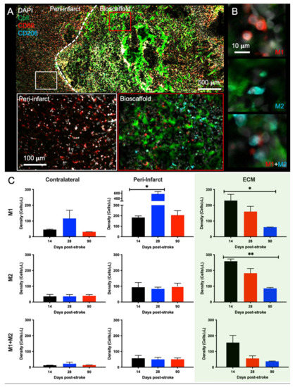 - Ghuman, H.; Massensini, A.R.; Donnelly, J.; Kim, S.M.; Medberry, C.J.; Badylak, S.F.; Modo, M. ECM hydrogel for the treatment of stroke: Characterization of the host cell infiltrate. Biomaterials 2016, 91, 166–181. [Google Scholar] [CrossRef] [PubMed] [Green Version]