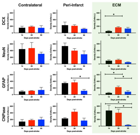 2.3. Post-Stroke Implantation Timing Affects Host Cell Infiltration