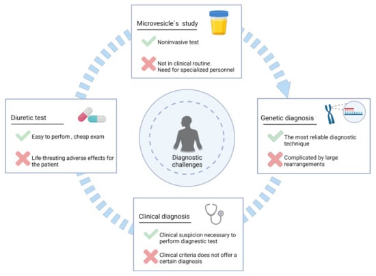 Additionally, in GS, prenatal tests would be of great value [] since some cases have been reported and diagnosed during pregnancy [,], with episodes of hypokalemia and salt craving. Nevertheless, as we will discuss later, genetic testing is not without problems and a conclusive diagnosis is not always achieved.