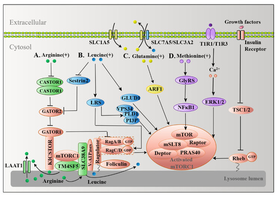 - Jewell, J.L.; Kim, Y.C.; Russell, R.C.; Yu, F.X.; Park, H.W.; Plouffe, S.W.; Tagliabracci, V.S.; Guan, K.L. Metabolism. Differential regulation of mTORC1 by leucine and glutamine. Science 2015, 347, 194–198. [Google Scholar] [CrossRef] [PubMed] [Green Version]